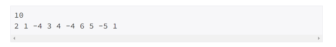 첫째 줄에 정수 n(1 ≤ n ≤ 100,000)이 주어지고 둘째 줄에는 n개의 정수로 이루어진 수열이 주어진다. 수는 -1,000보다 크거나 같고, 1,000보다 작거나 같은 정수이다.