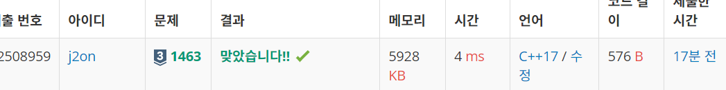 | < 백준 BaekJoon : 1932번 정수삼각형 > C++ (0) | 2024.01.28 |