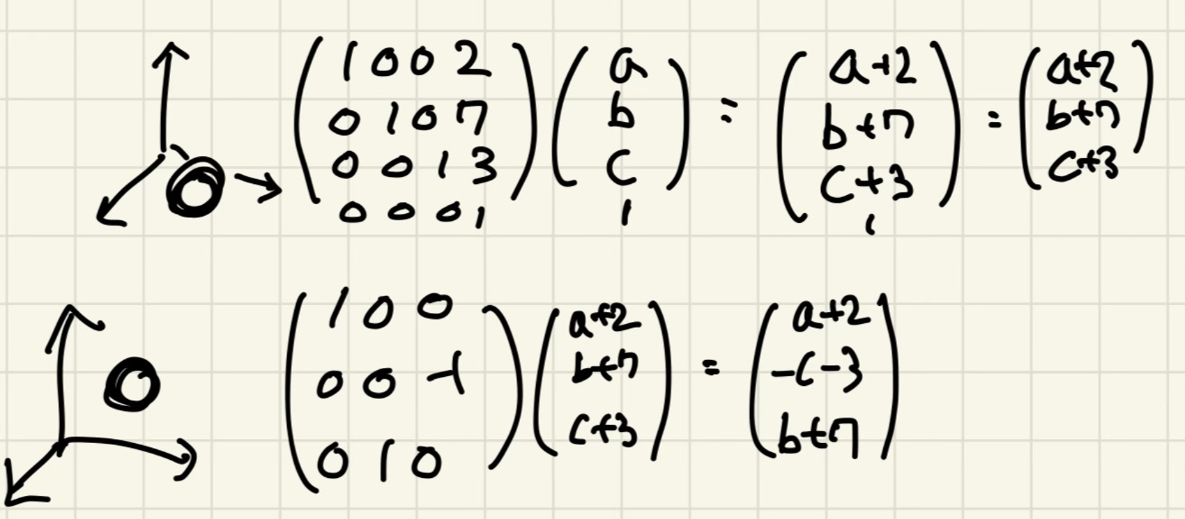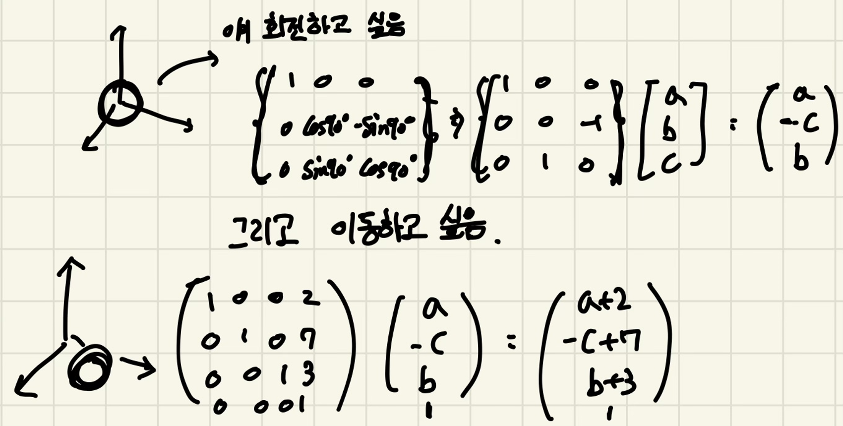 ⇒ Rotation과 Scailing에 통합해서 하나의 행렬로 구성할 수 있기 때문.