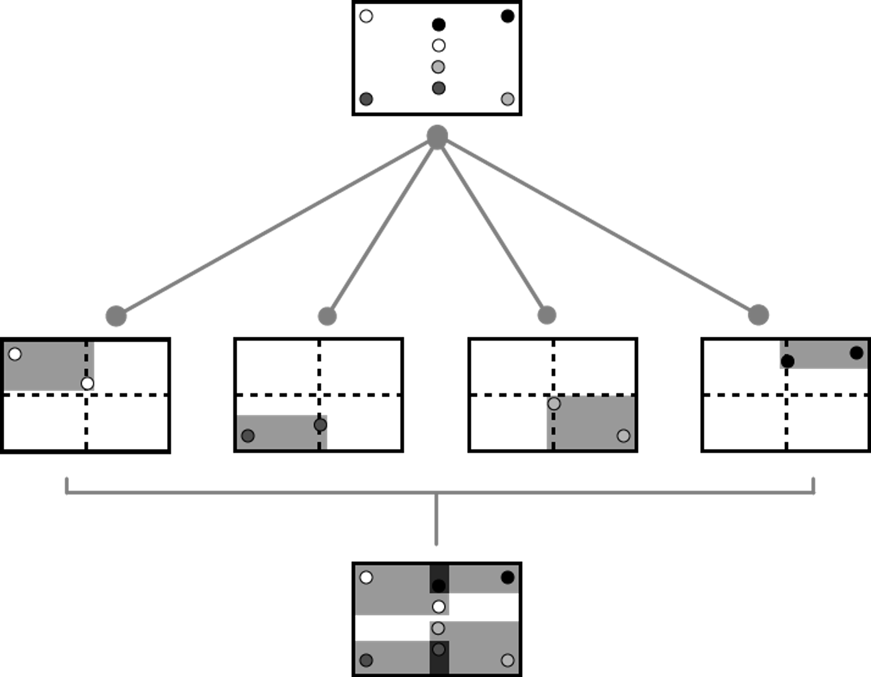 - Quad Tree는 크기를 엄격하게 4개로 분할한다.