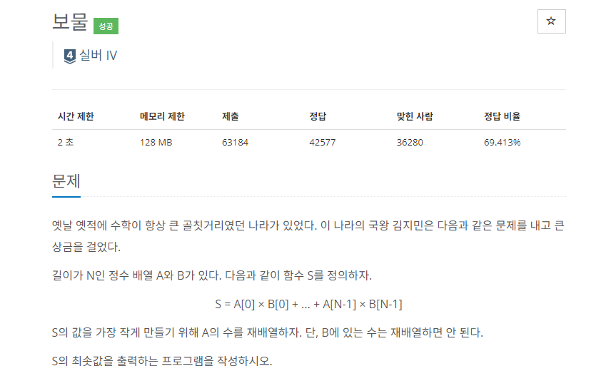 StudyAlgorithm_Part2/백준/Silver/1026. 보물 at main · J2on/StudyAlgorithm_Part2