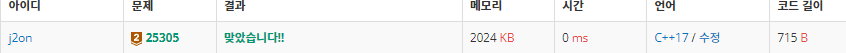 https://github.com/J2on/BaekjoonOnlineJudge/blob/master/V2/BaekJoon_25305.cpp