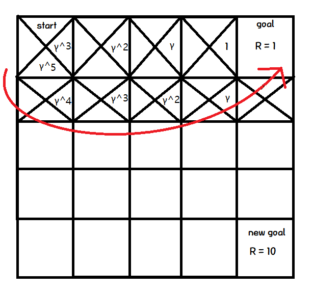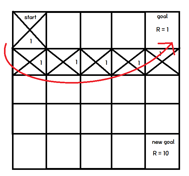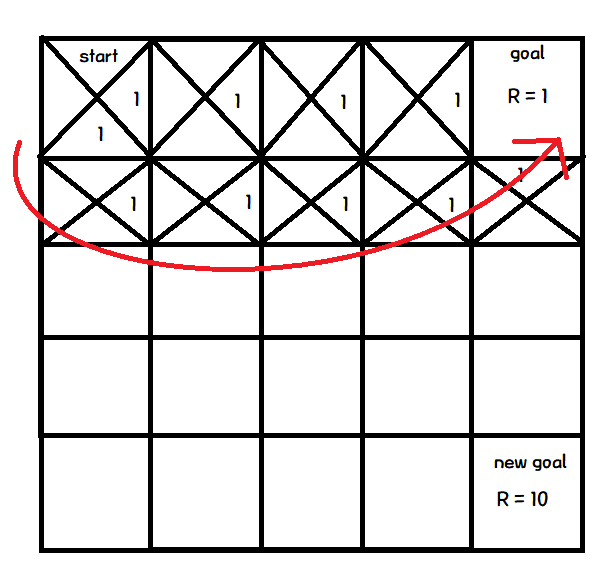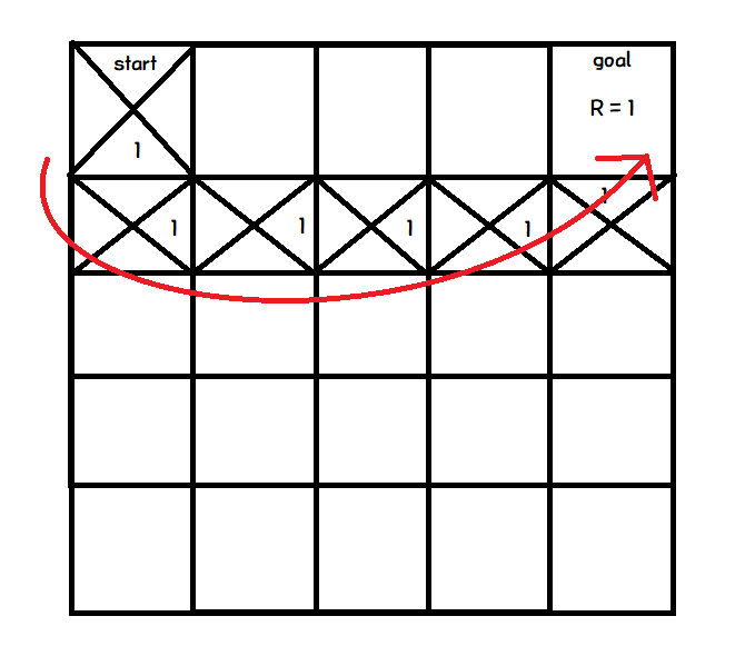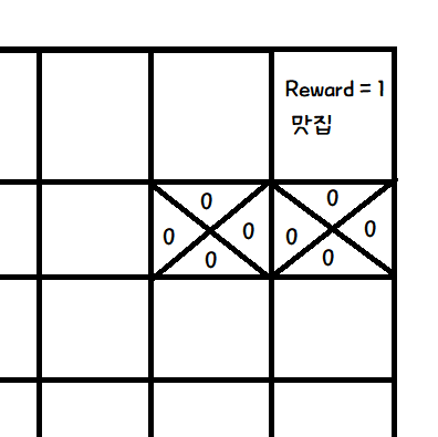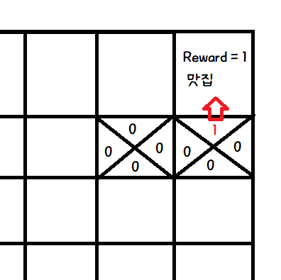 그리고, 목표지점에 다다랐을때, 마지막 action에 Q값을 변경한다.
