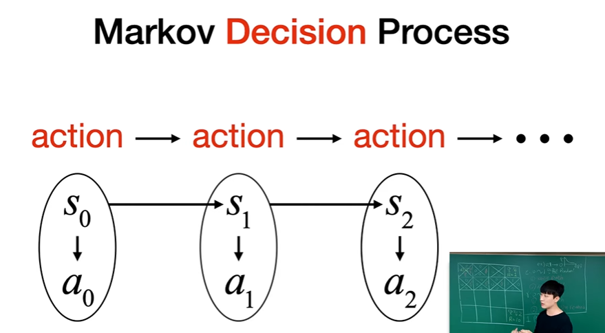 그래서 state와 action들이 Chain을 통해 연결되어 있는 형태를 Markov Chain이라 합니다.