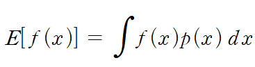 말로 풀자면, x의 결괏값 f(x)의 기댓값은 f(x)와 x가 일어난 확률 p(x)의 곱을 적분한 것과 같다.