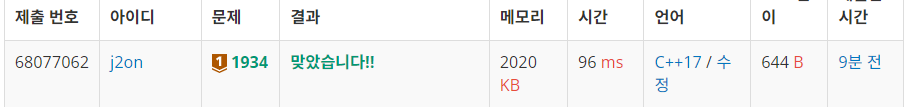 https://www.acmicpc.net/problem/1934